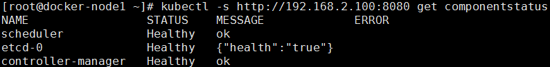 kubectl -s http://192.168.2.100:8080 get componentstatus