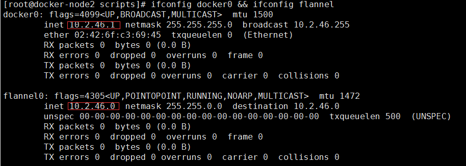 ifconfig docker0 && ifconfig flannel