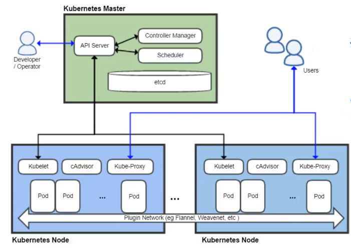 - 提供其他模块之间的数据交互和通信的枢纽(其他模块通过API Server查询或修改数据,只有API Server才直接操作etcd);