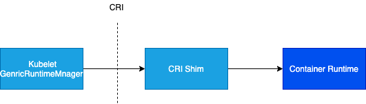 在Kubernetes架构中,是由Kubelet组件负责与容器运行时交互的。Kubelet调用容器运行时的流程如下图所示。