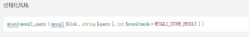 返回值:失败返回false,通过mysqli_query()成功执行select、show、sescribe或explain都会返回一个Mysqli——resualt对象,其他返回true。
