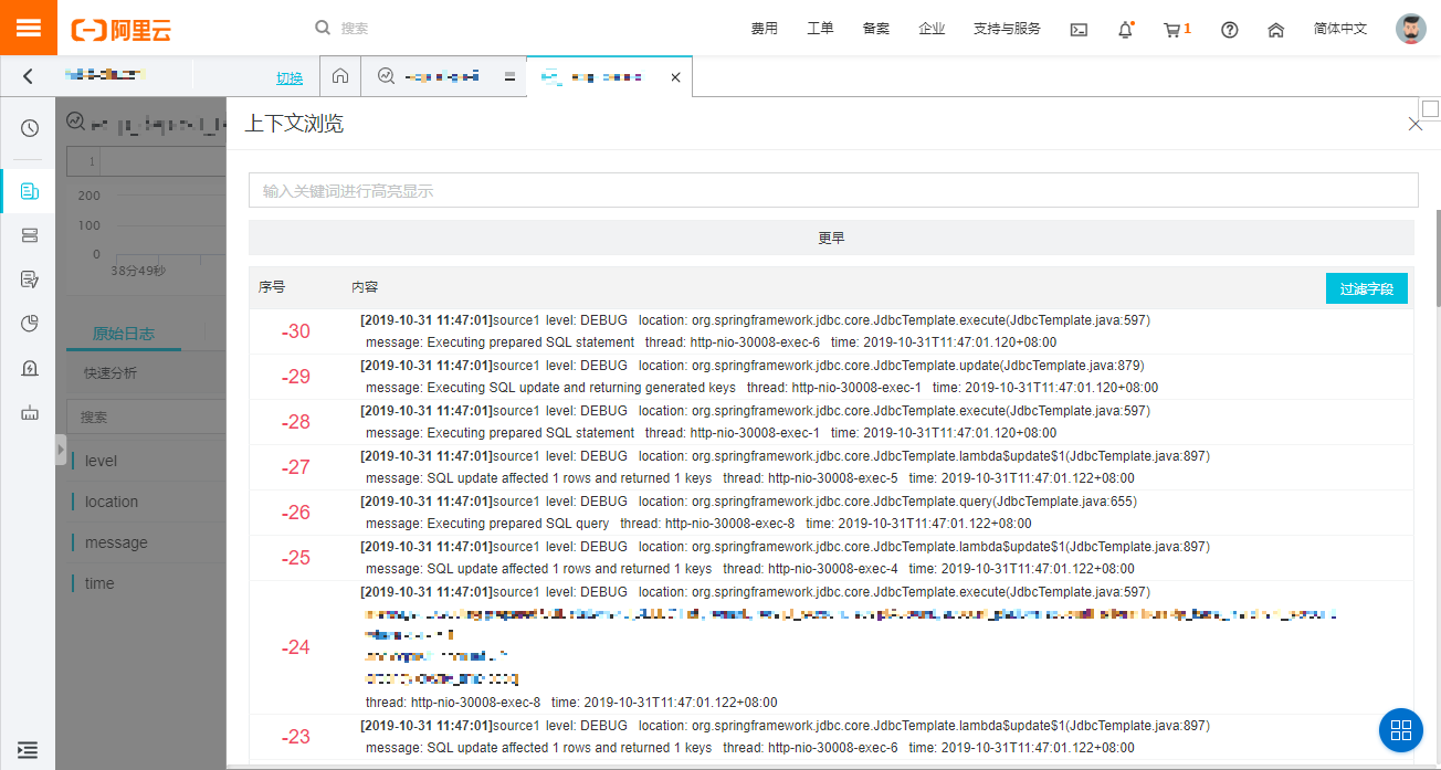 参照阿里云日志服务控制台上下文浏览。