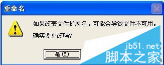 8、弹出重命名警告框:“如果改变文件扩展名,可能会导致文件不可用。确实要更改吗?”,单击“是”。