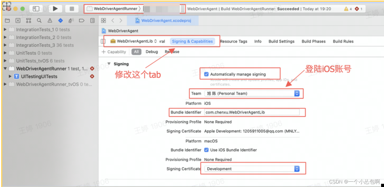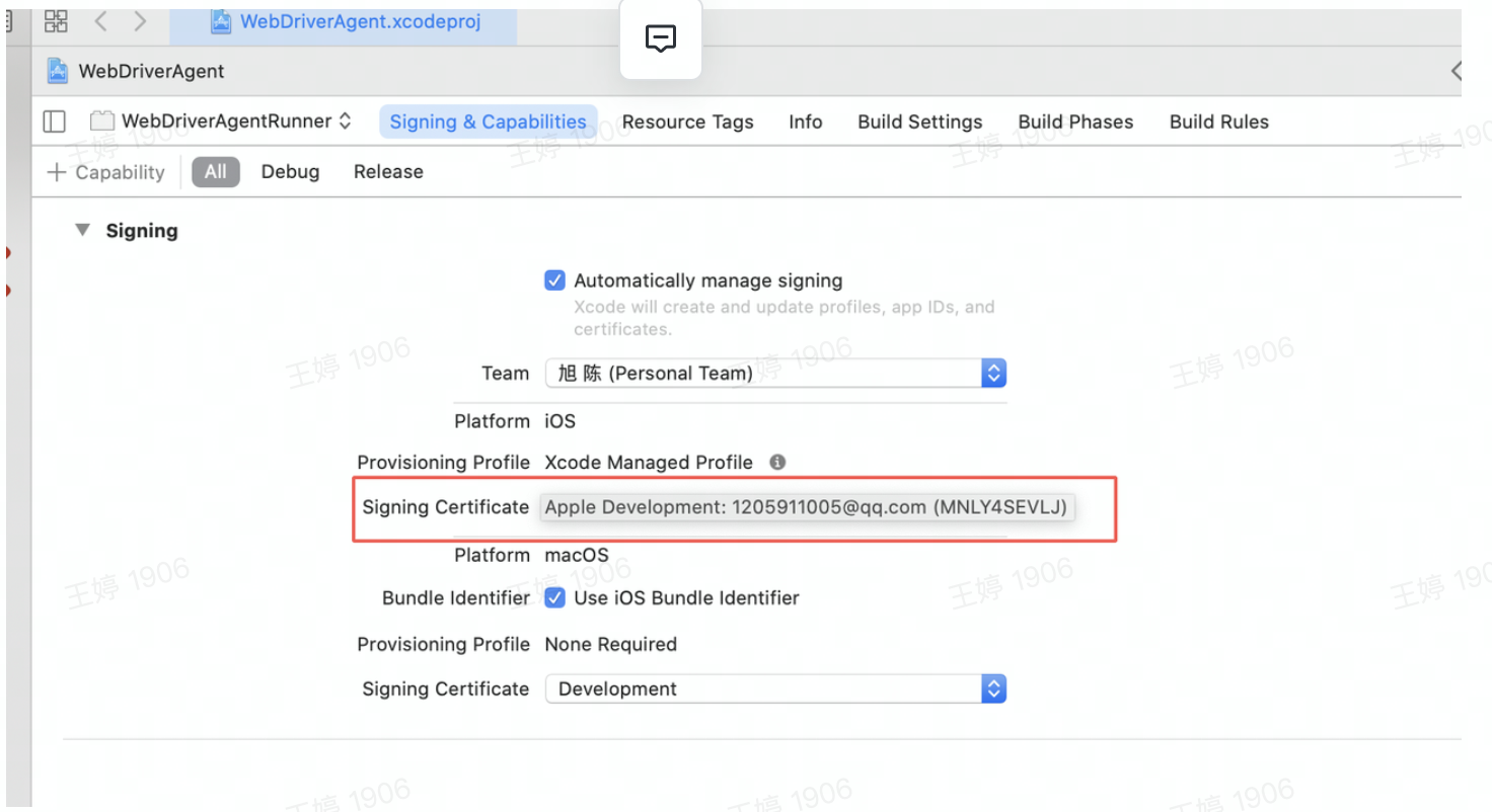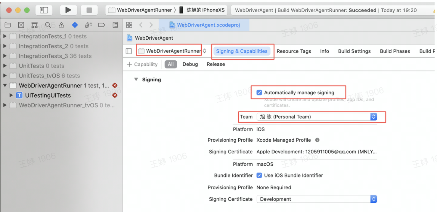 第四步 修改WebDriverAgentRunner文件的 Signing&Capabilities