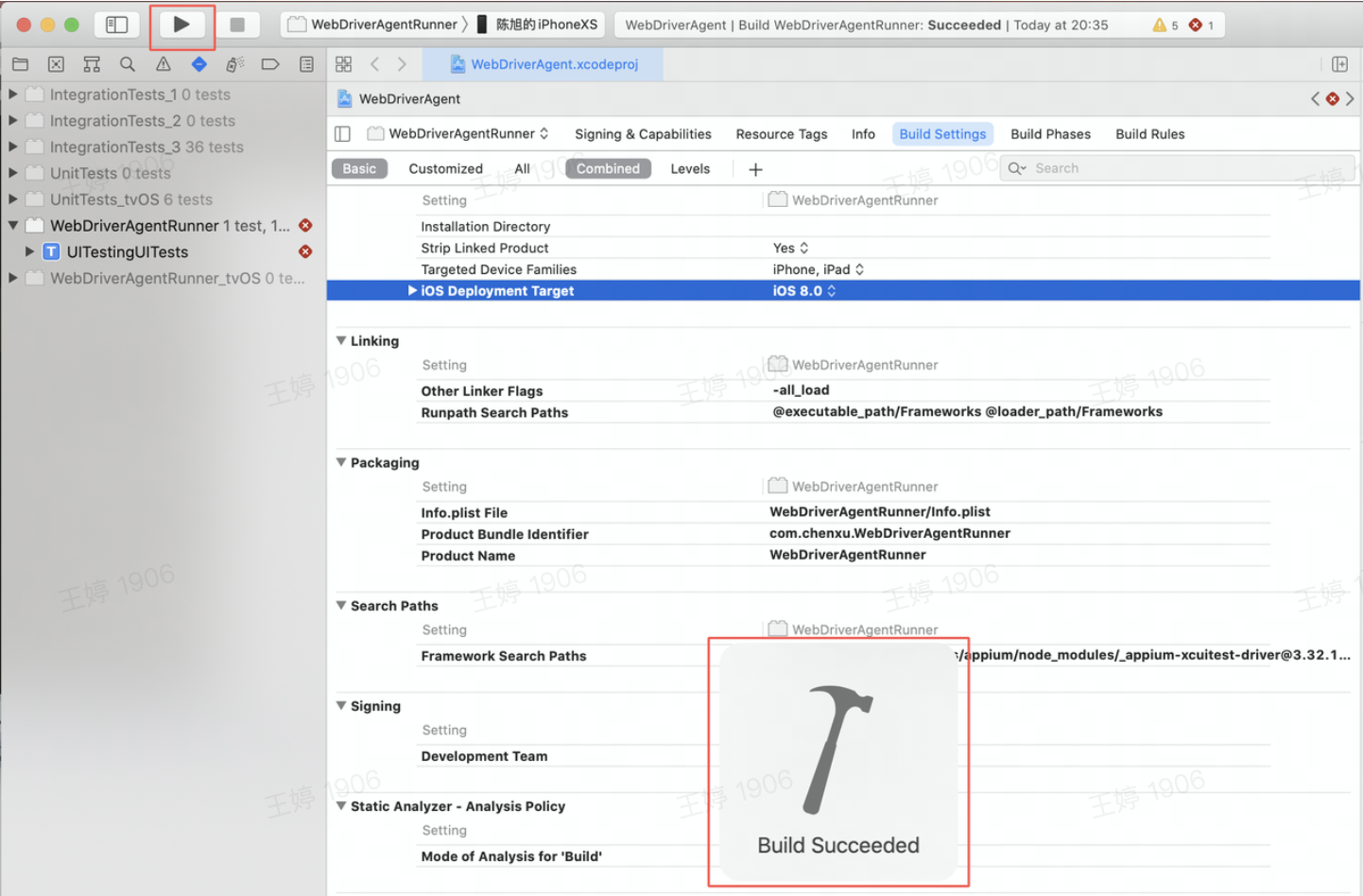第五步 修改WebDriverAgentRunner文件的 Build Settings