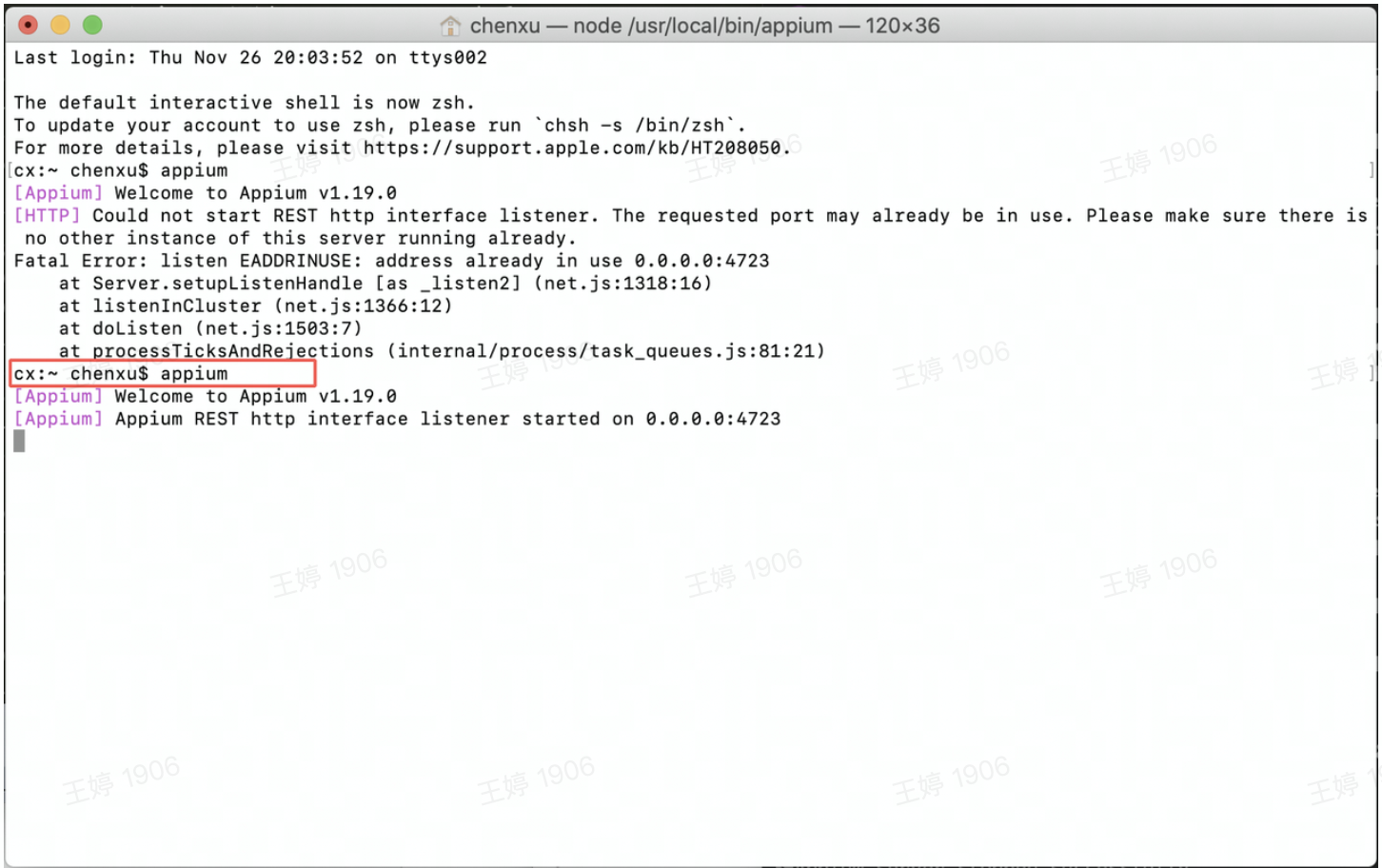第一步: cd /usr/local/lib/node_modules/appium/node_modules/appium-xcuitest-driver/ 第二步:ls命令 查看文件夹中是否存在WebDriverAgent文件夹 第三步:若不存在WebDriverAgent文件夹,则在当前文件夹下,使用以下命令,若存在,则跳过第三步 git clone https://github.com/facebookarchive/WebDriverAgent.git 第四步:cd WebDriverAgent/ 第五步:mkdir -p Resources/WebDriverAgent.bundle 第六步:sh ./Scripts/bootstrap.sh 第七步:第六步安装成功后,再次执行该命令,若出现以下提示,则证明安装成功 -e Fetching dependenciesDependencies up-to-date