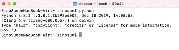 终端输入:Python 展示安装的Python的版本,即安装成功