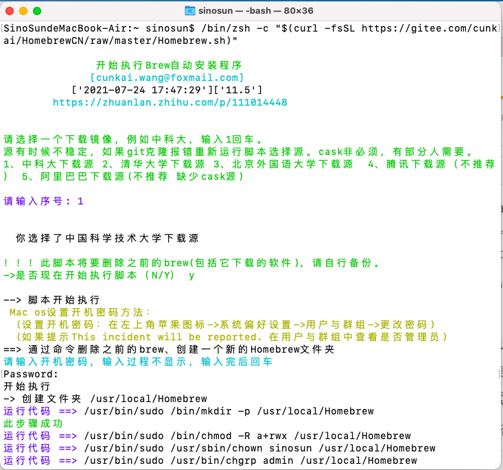 /bin/zsh -c "$(curl -fsSL https://gitee.com/cunkai/HomebrewCN/raw/master/Homebrew.sh)"