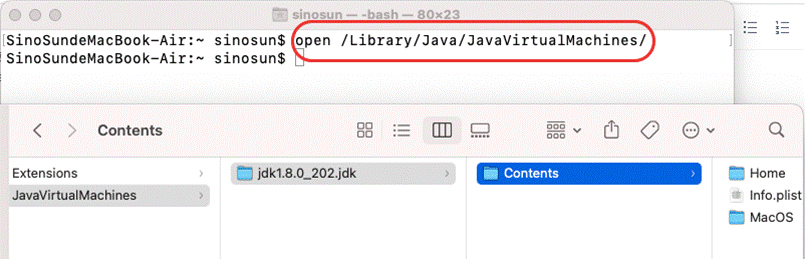 在终端中输入:open /Library/Java/JavaVirtualMachines/ 在访达中可以开启安装目录。