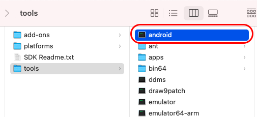 下载的包解压后,在目录中> tools > 执行脚本android 进行升级安装: