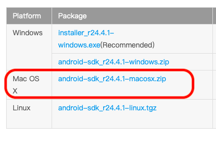 我的路径是:/Users/sinosun/Downloads/android-sdk-macosx