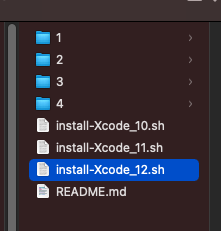 2.然后根据xcode版本把相应的install-Xcode_12.sh拖到终端,enter
