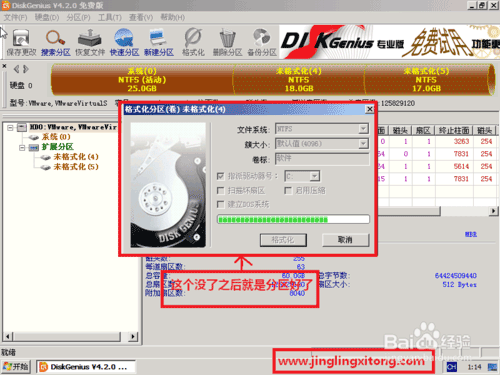 6、分区很快,一会就好了,但是分区成功后这个软件没什么提示,分区的哪个提示框没了之后,就是分区好了,看看下面的两幅图吧