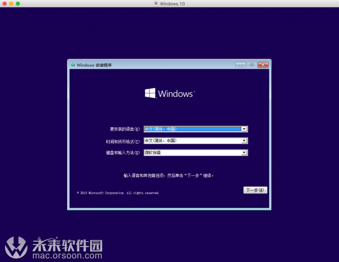开始安装Windows 10