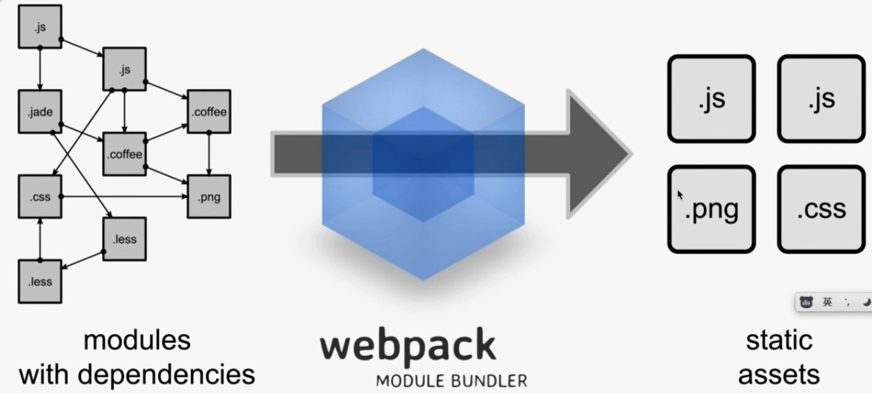 webpack就是将各种资源打包,然后输出js、图片、css静态文件。