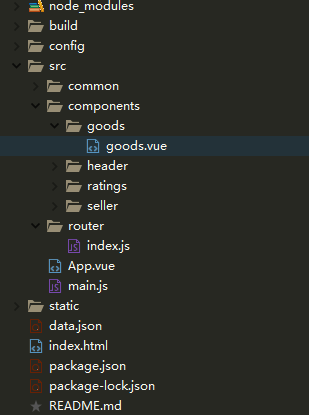 步骤一:创建一个goods.vue文件,其他两个ratings.vue和seller.vue类似
