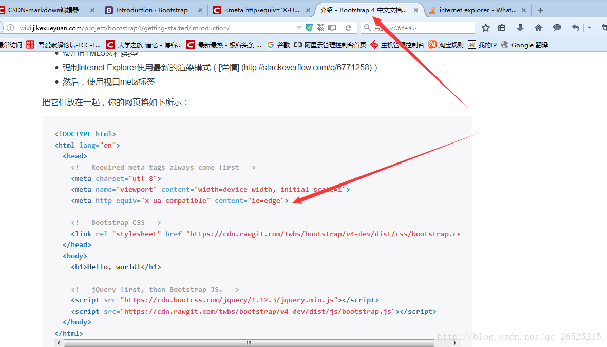 一开始写的时候,我并没有写这句,后来看BootStrap4的中文文档时,发现了这一句,我就谷歌了一下,发现如下的内容: