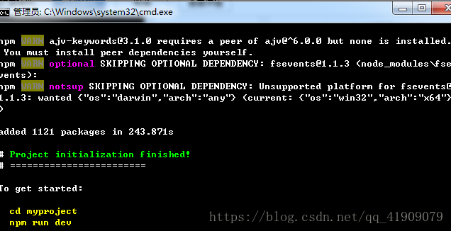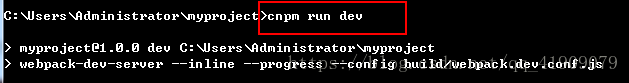 2.5.3安装成功之后,执行最后命令,运行项目,输入指令:cnpm run dev