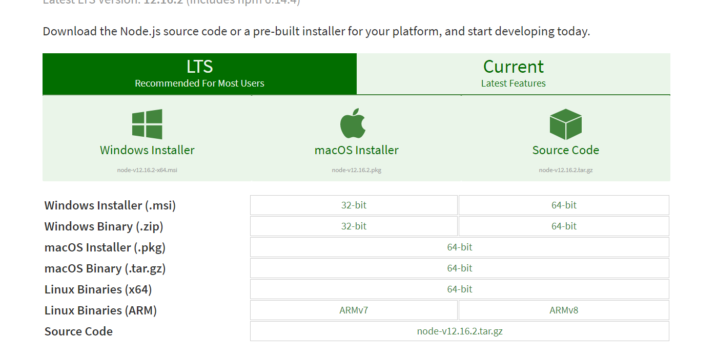 1、下载对应你系统的Node.js版本:https://nodejs.org/en/download/,选择对应的版本。