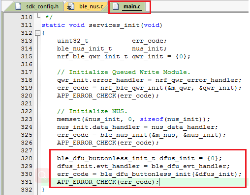 1.main.c文件中的static void dfu_observer(nrf_dfu_evt_type_t evt_type)函数被传入nrf_bootloader_init函数的函数指针参数