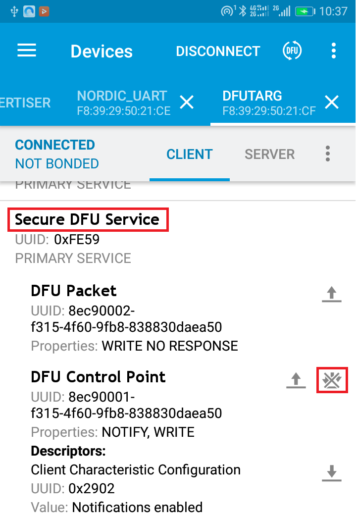 6.连接DfuTarg后打开notify开关