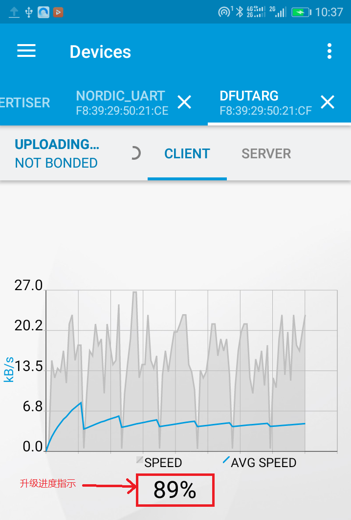 8.升级包加载完后会开始DFU升级