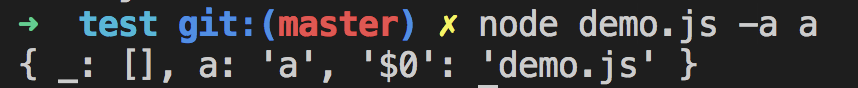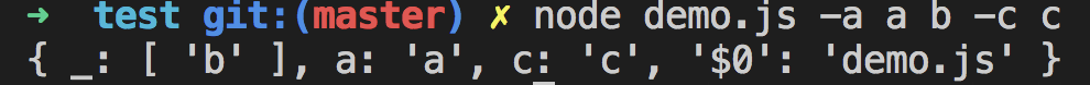 node demo.js -a a //结果 { _: [], a: 'a', '$0': 'demo.js' }