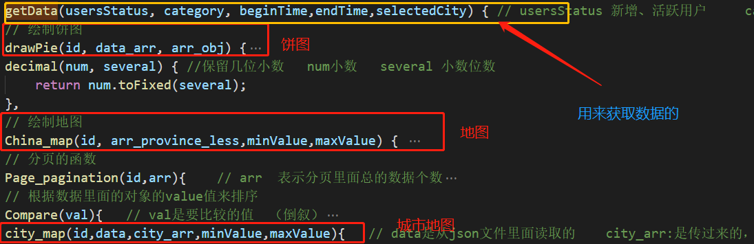 (步骤二)饼图、地图、城市地图,我封装成了公用的函数,使用的话直接传入id和数据就可以。