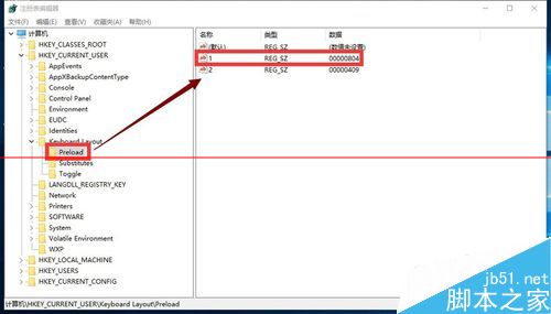 7、定位到HKEY_CURRENT_USER/Keyboard Layout/Substitutes,右侧空白处鼠标右键-新建“字符串值”,名称为 00000804,值为 00000409。同时确认下图3的定位设置是否一致,否则新建和修改成如下图2