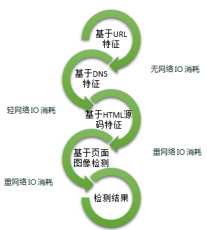 - 基于页面图像检测,根据截取的网页截图与合法网站图像相似度对比情况,或者logo包含情况判断是否为钓鱼站点。在URL和DNS特征模型都无法对URL进行判断时,也可以根据直观的网页呈现的视图与行业库网站的像素差异判断是否为钓鱼站点。但攻击仿冒方式的改变,很多仿冒钓鱼站点直接复制使用被仿冒实体的logo,因此可疑站点中若包含行业实体logo,那么也很可能是钓鱼站点。由于这种站点不仅要截取网站图像,网络IO耗费大,图像计算量也比较大,检测结果更理想,也更耗时。