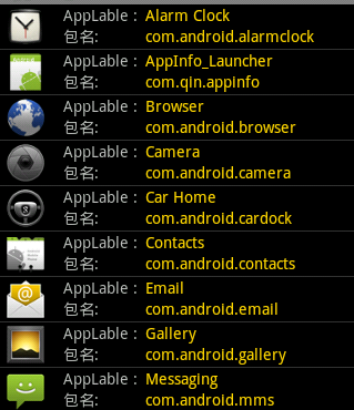 本节内容是如何获取Android系统中应用程序的信息,主要包括packagename、label、icon、占用大小等。具体分为两个