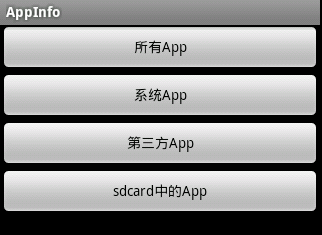Demo 2 :通过getInstalledApplications()方法获取应用,然后对其过滤,查找出我们需要的第三方应用,系统应用,安装在sdcard的应用。