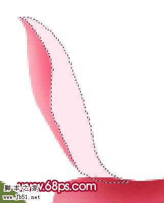 <图14> 13、适当把图层放大,用钢笔工具勾出下图所示的路径,转为选区后填充颜色#FDE6EE,效果如图16,再用画笔涂上一些暗调颜色效果如图17。