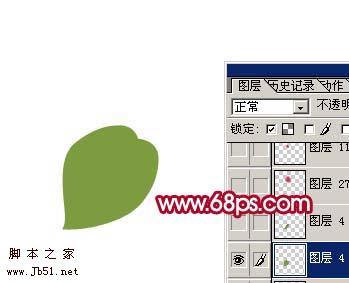 <图2> 2、锁定图层,如图3,把前景颜色设置为:#6E7643,选择画笔工具,不透明度设为:10%左右,把叶子的左边部分涂暗一点,效果如图4。