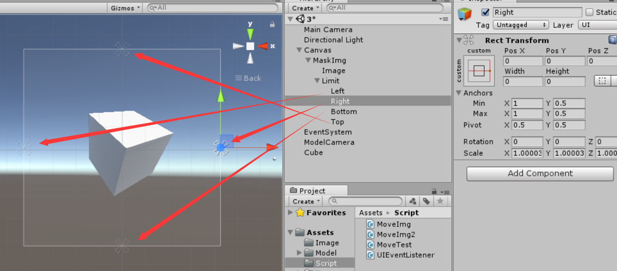 添加限制,在MaskImg上新建子物体 Limit ,并设置Anchor