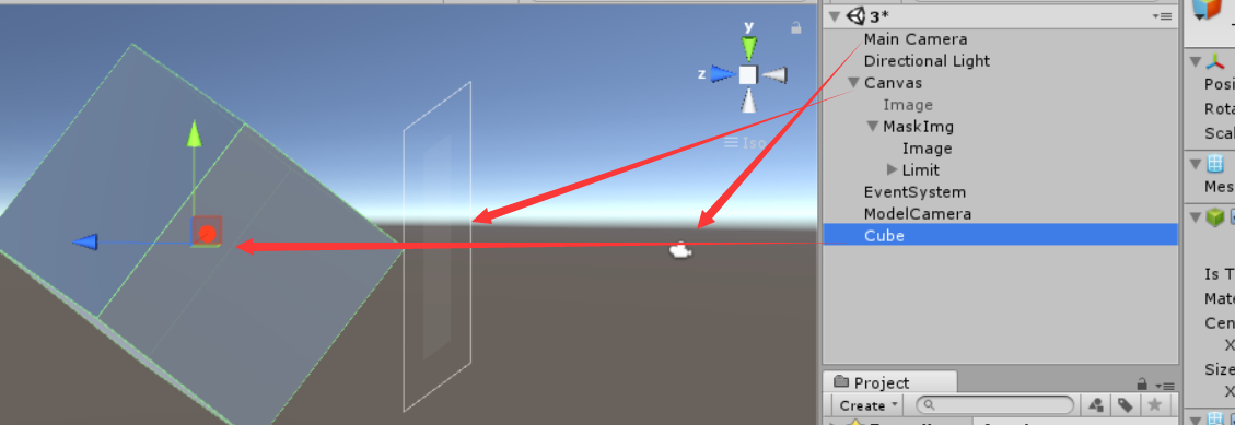 这时候会发现一个问题,就是Cube不会被Mask遮挡住,因为Mask遮罩遮不住模型,其实只要在Mask周围添加上UI图片,挡住Cube就行了。