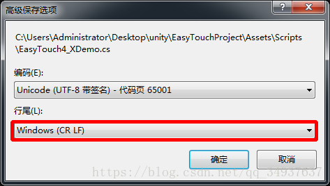 Windows的vs行尾转换:“文件->高级保存选项”进行如下操作就行