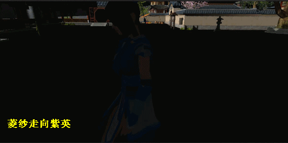 之后我们看到镜头切换给了紫英,紫英不同的是,有了对话另外方法中,有一个audio方法,这个方法就是我们的语音同步,当显示上面的字幕时,紫英也会发出正常的说话声音,因为模型没有面部骨骼绑定,所以口型同步没有加,如果有模型,同样可以实现表情同步,