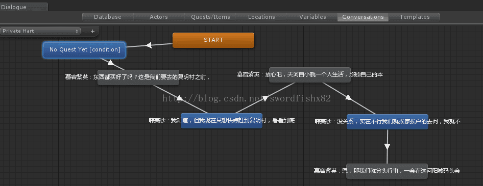 我们先看下改版的Dialogue System for Unity要完成我们仙剑demo的效果。