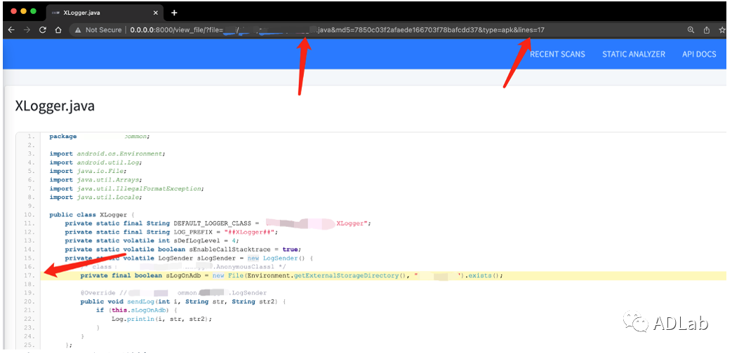 扫描器会将APK反编译并保存java源码到本地,适合研究员快速分析目标APP。也便于研究员反复测试及扫描结果的查询。