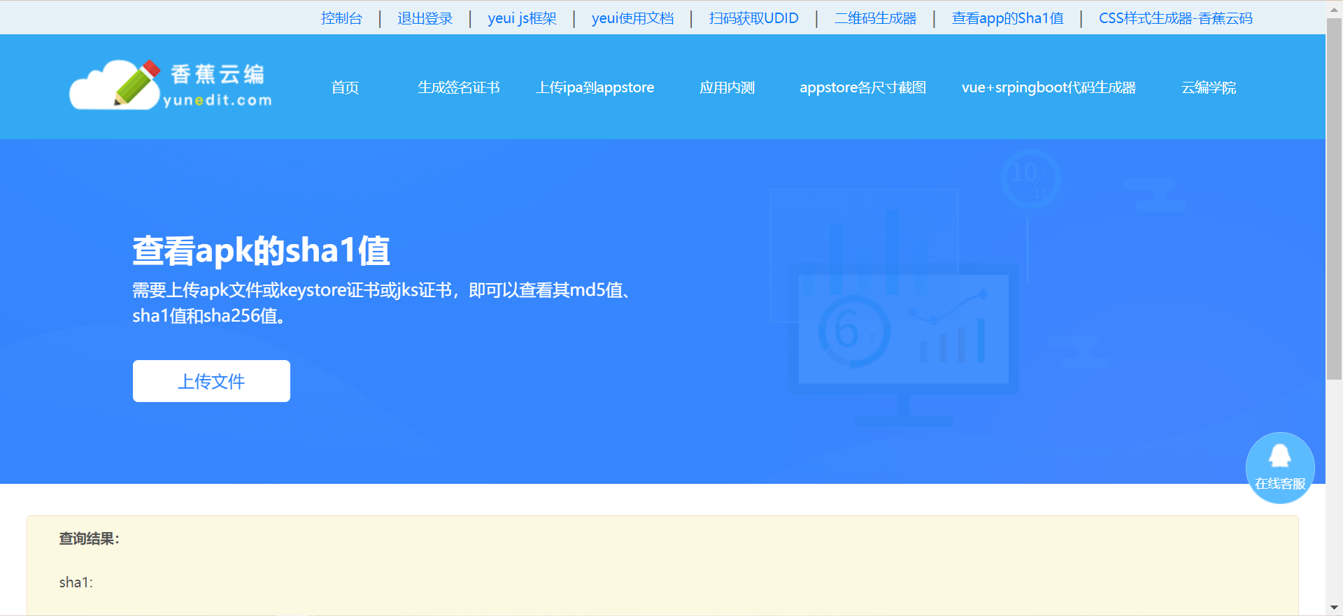 发布版安全码SHA1:安卓证书的SHA1码(如果不知道自己的SHA1码,又嫌弃官方提供的获取方法可到香蕉云,查看sha1值,或者直接从香蕉云生成安卓证书可直接查看证书的sha1值)