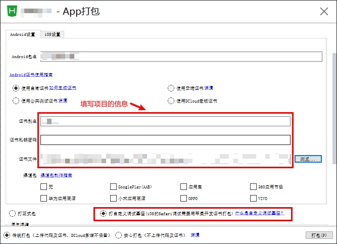 制作自己的自定义调试基座,填写自己的信息,点击打包