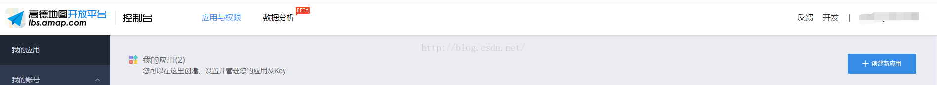 在高德地图注册开发者账号,然后创建应用,使用SHA1和PackageName得到Key