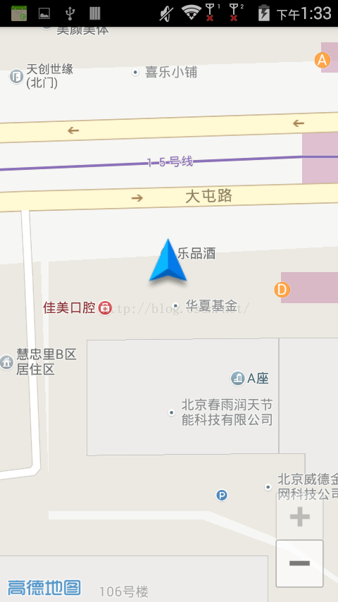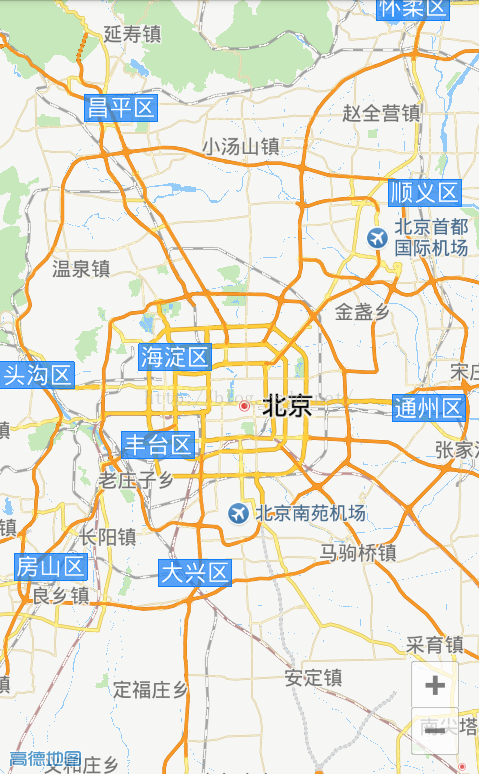 效果图和基础地图的效果图没什么区别,因为我既没有设置中心点也没有设置marker,但是我获取到了位置,那么定位完毕后添加一个中心点,一个marker就可以完成基础地图+定位+marker的效果了