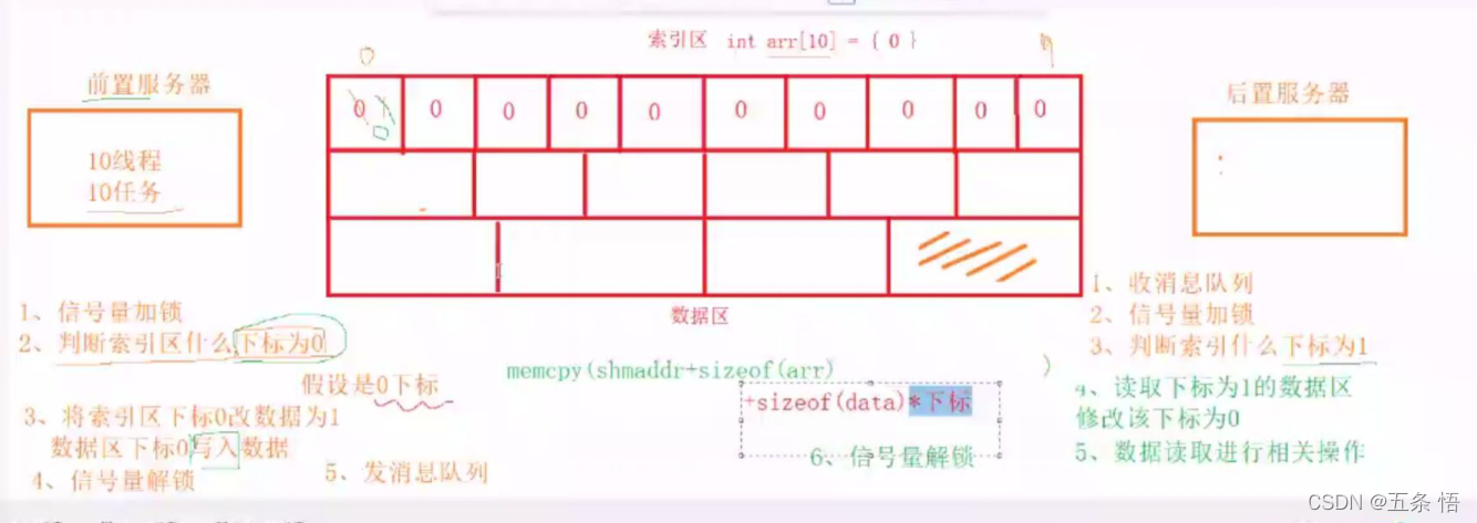 我将共享内存划分为一个一个的数据块,并在开头加上索引区,通过索引区找到对应的数据,具体实现,是由于共享内存本身是内存,可以通过地址偏移来划分区域。