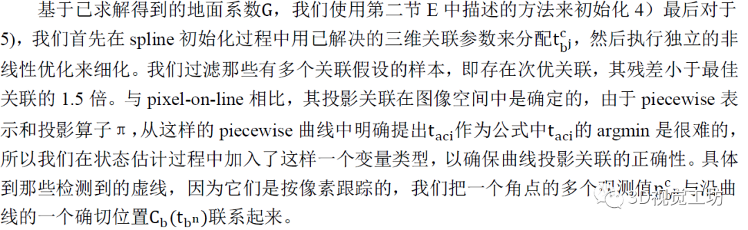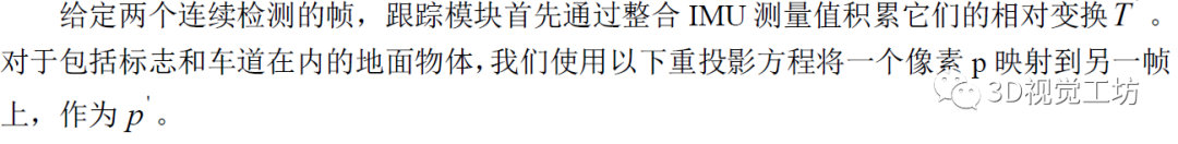 对于在垂直物体(如电线杆)中检测到的关键点,我们使用光流方法进行帧间跟踪。在特征跟踪过程中,我们保留了由GFTT提取器和FREAK描述器提取、描述和跟踪的经典关键点,因为它们不仅是视觉-惯性测距的一部分,而且是值得纳入结构化物体的稳定跟踪的点特征。与输出掩码的分割不同,检测到的二维方框可能包含来自背景区域的GFTT特征关键点,特别是在极点实例中。因此,在II-F节讨论的状态初始化过程中,我们对这些背景特征关键点进行了离群剔除。