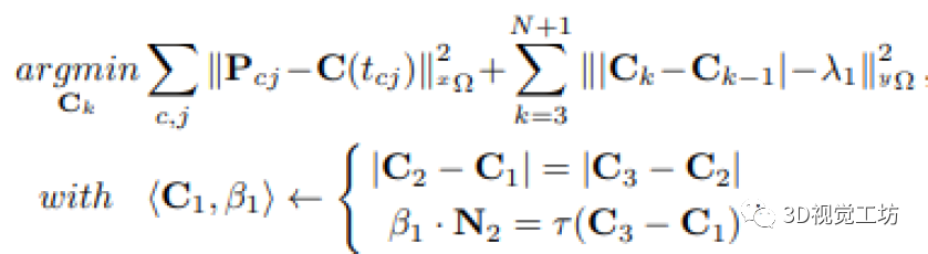 我们使用下面的约束条件来动态地将样本和角点作为spline b的控制点的测量值。
