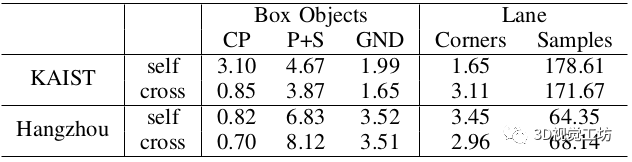 下表显示了来自不同语义实例的平均用点数量。由于相机可以观察和检测到比地面物体相对较远的有效的电线杆和标志物,这些物体对定位的贡献最大。