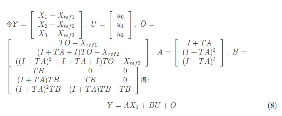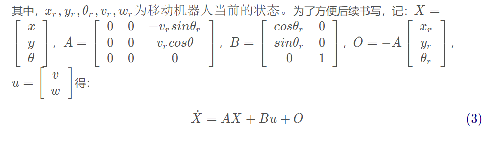 这里的状态方程是非线性化的,无法直接使用。需要在参考值ref处通过一阶泰勒公式进行展开,这个时候就可以得到A和B矩阵,是通过雅克比矩阵得到的。