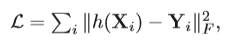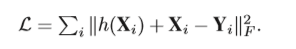 初步提出的模型如上图Figure 2。雨图作为输入X,干净图作为输出Y。直观地可以理解为中间步骤为函数h(x),则通过以下公式可以算得误差。F是范数的意思。
